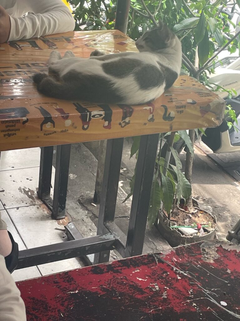 机にはネコもいて、インドネシアらしさを感じつつ癒されました。