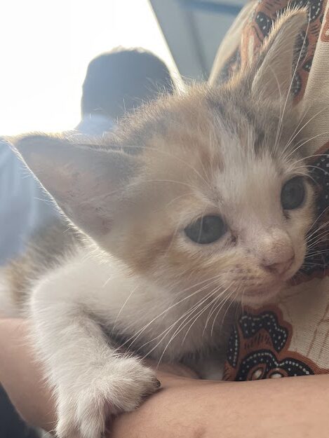 まずは、抱かれてすこしびびってるミケです!(名前は皆さんが理解しやすいよう、ブログ内での名前にしてます。だれか名前つけてるのかな~)