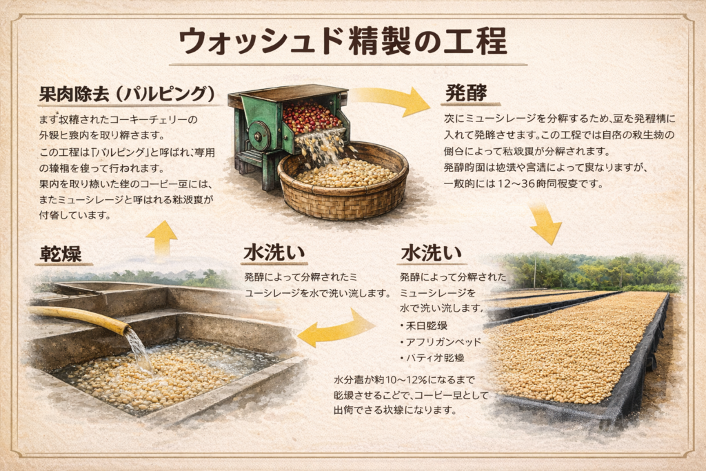 ウォッシュド精製とは?コーヒーの特徴・味・工程をわかりやすく解説